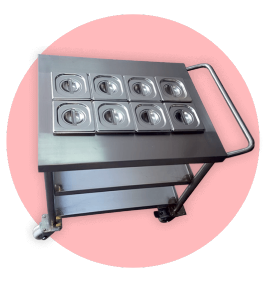 Jyoti Equipments offers the Bain Marie Trolley, a versatile and efficient solution for keeping food warm during service. Ideal for hotels, restaurants, and catering services, this trolley ensures that food remains at the perfect serving temperature for extended periods. Crafted from high-quality stainless steel, it features multiple compartments to accommodate a variety of dishes. The heavy-duty wheels provide easy mobility, making it perfect for both indoor and outdoor catering events.